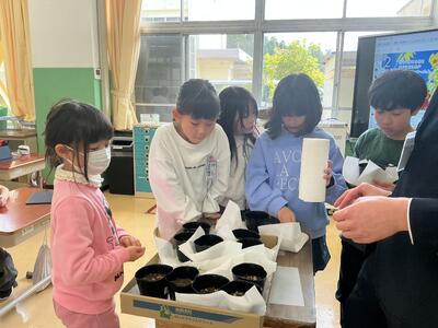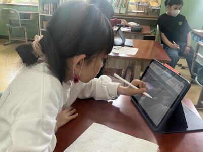 3年生は、ひまわりとほうせんかの種を観察しました。最初にひまわりの種をよく見て、その形をタブレットにかきました。今年からタブレットペンを使っているので少しずつ慣れていってほしいです。
